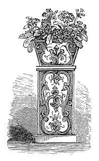 Free Botanical Digital Stamp: Flowers in Pedestal Planter with Scroll Design